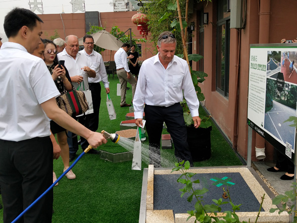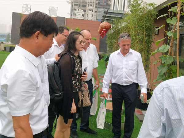 在幾位總經(jīng)理的陪同下,參觀公司的發(fā)展情況,展現(xiàn)公司的實(shí)力底蘊(yùn)。為瑞士代表團(tuán)介紹透水混凝土行業(yè)的發(fā)展,特別是中國海綿城市的發(fā)展的情況。未來全球會(huì)有更多的城市將海綿城市、生態(tài)城市作為重點(diǎn),改善人類的生存環(huán)境。