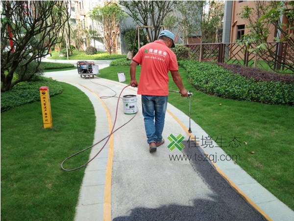 黑色透水混凝土路面居然是這么噴涂出來的!「佳境生態(tài)」