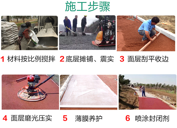 彩色透水地坪鋪裝效率高,建設(shè)施工效率高,施工地現(xiàn)場攪拌施工即可,速度快。