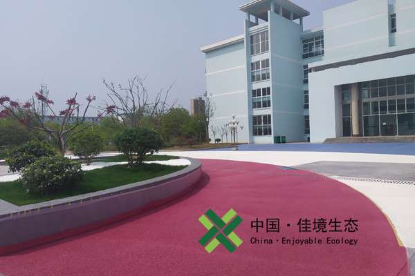 在校園建設中應用海綿城市的技術理念,通過設置雨水花園、透水鋪裝和調蓄水池,實現雨水凈化、回用及綠化灌溉功能。校園海綿城市改造讓校園內 “逢雨必積水”的現象成為歷史,彩色透水混凝土地面,色彩十分美觀大氣。