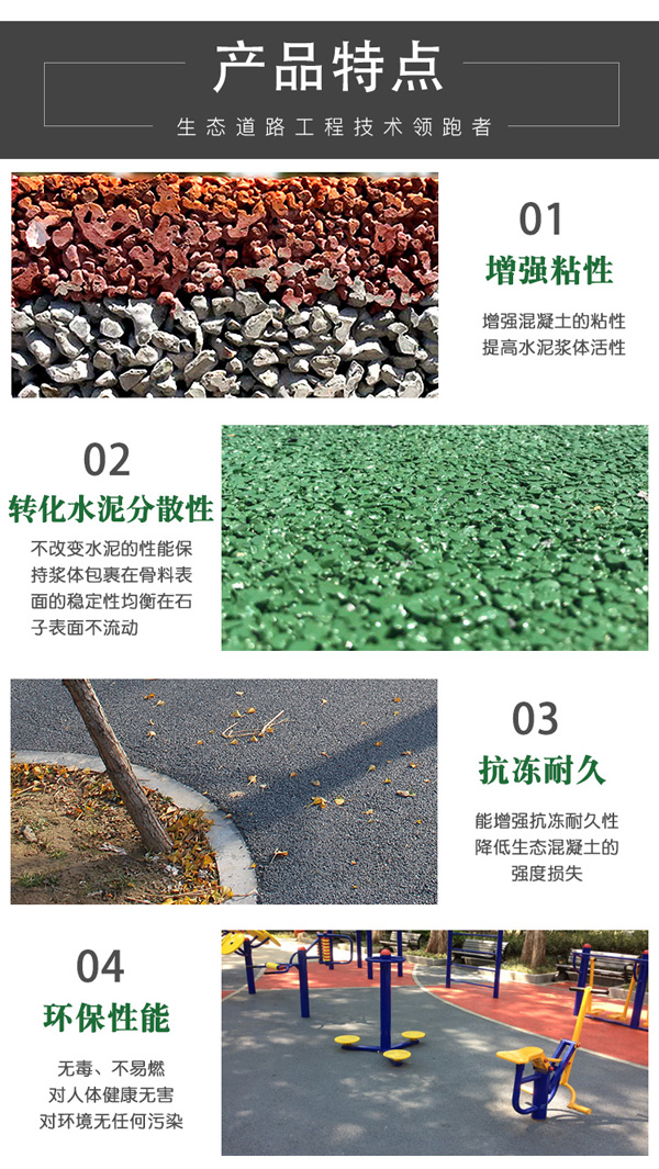 佳境生態(tài)透水混凝土增強(qiáng)劑廠家,從事透水道路行業(yè),生產(chǎn)的增強(qiáng)劑品質(zhì)高,使透水道路具有抗凍融性能、耐久性和耐候性。